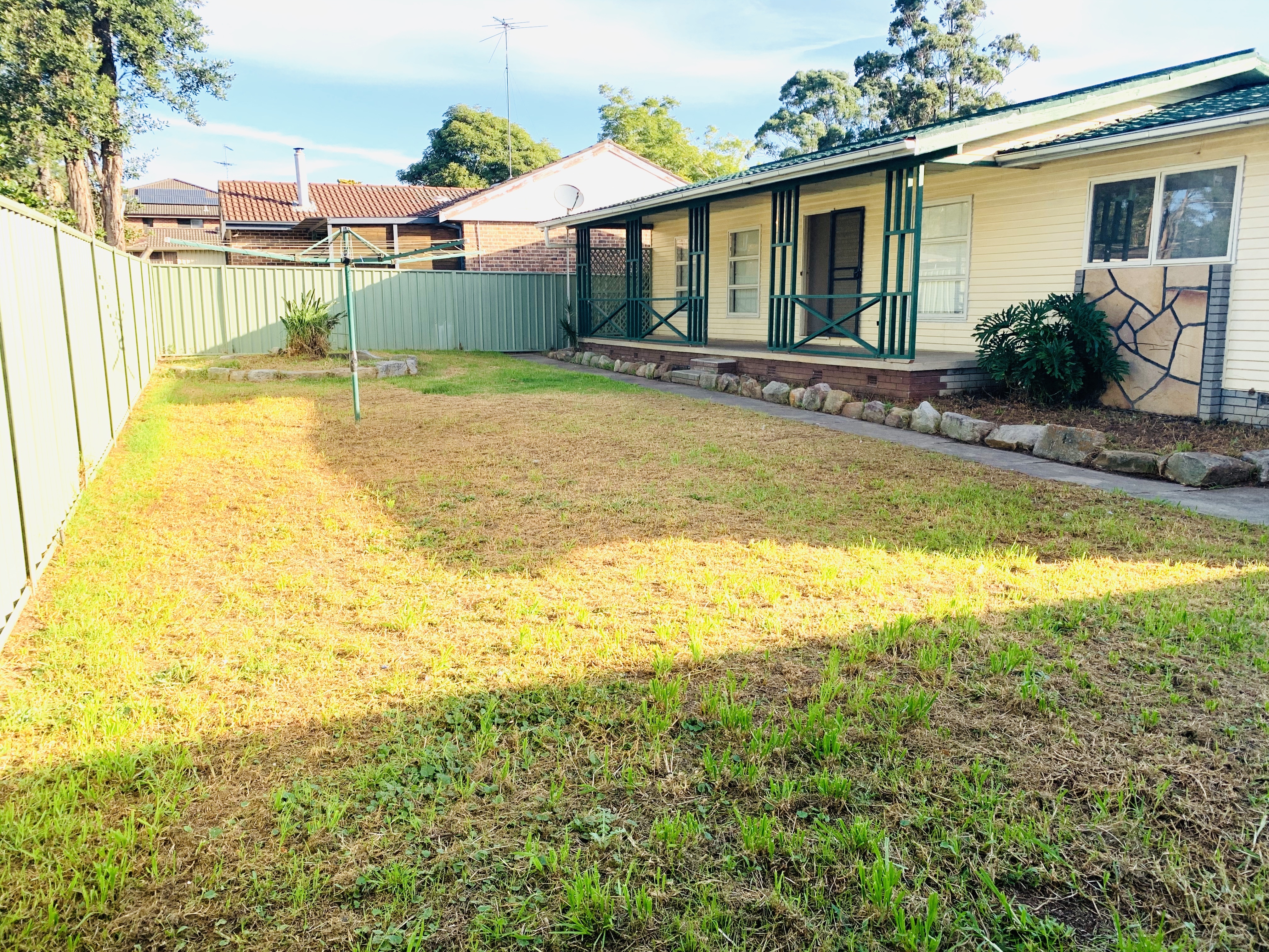 - great sized, level yard and covered entertaining area across the back of the home, securely fenced.