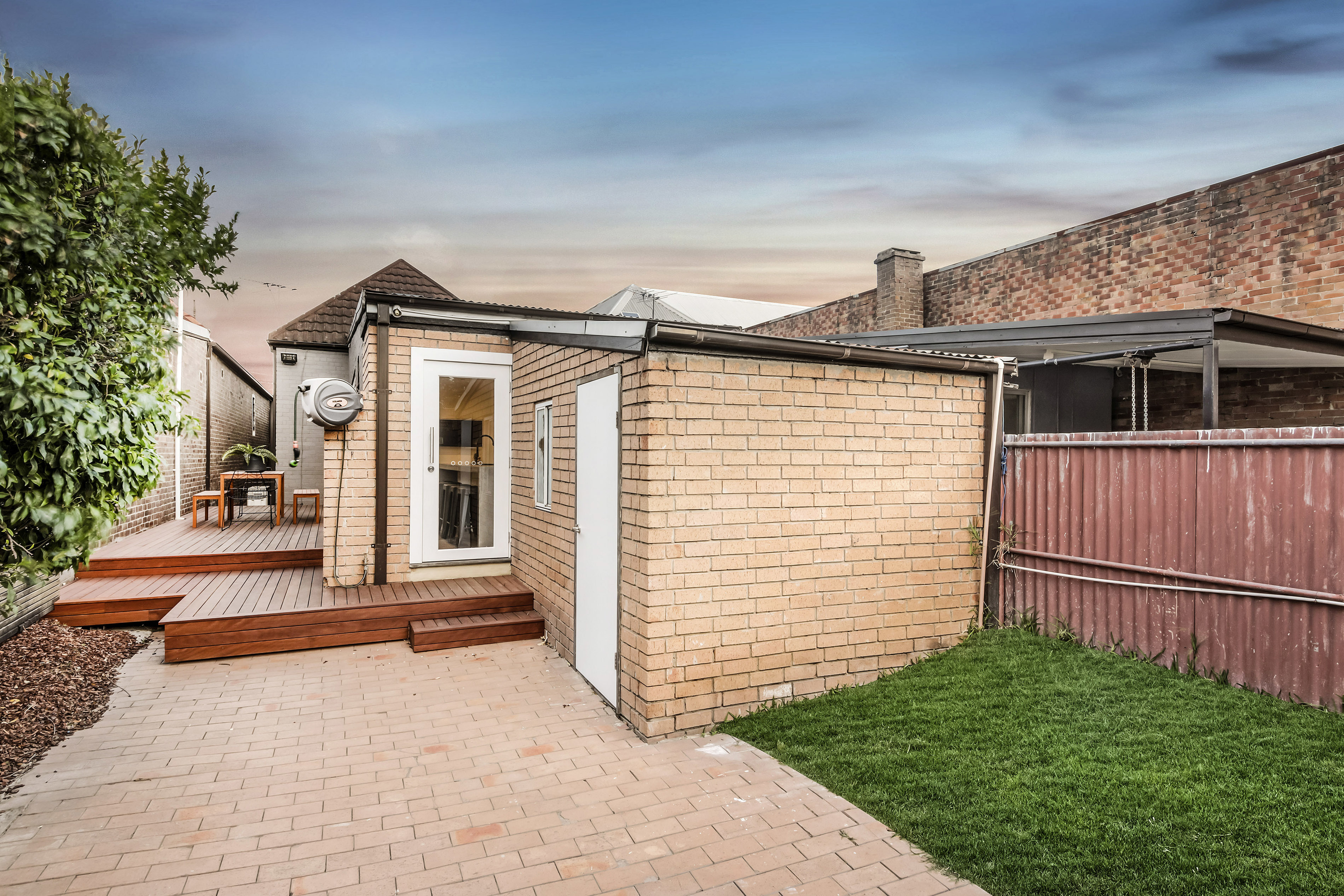 - Private hard wood timber deck and paved garden courtyard.