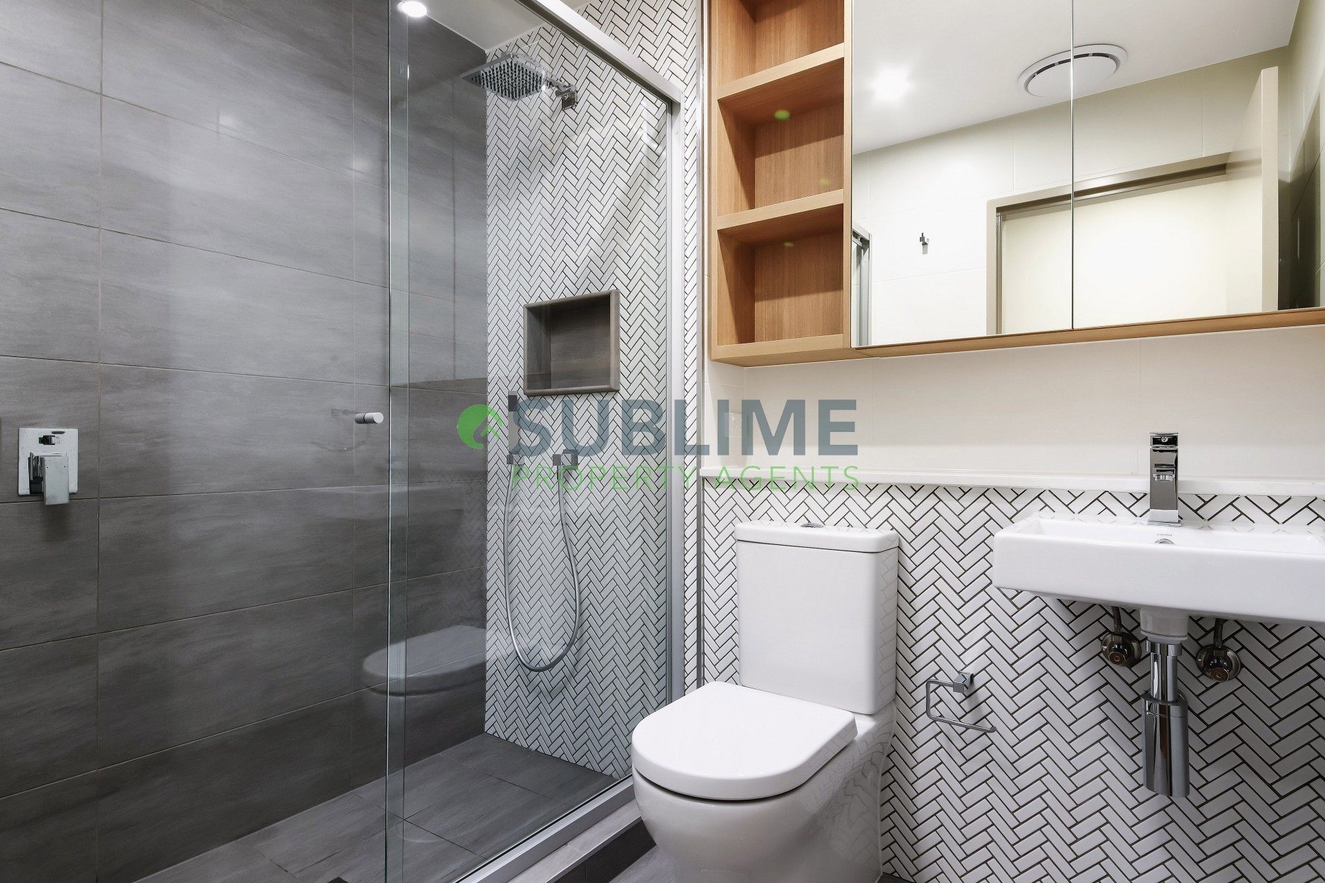 - Designer bathroom with quality finishes.