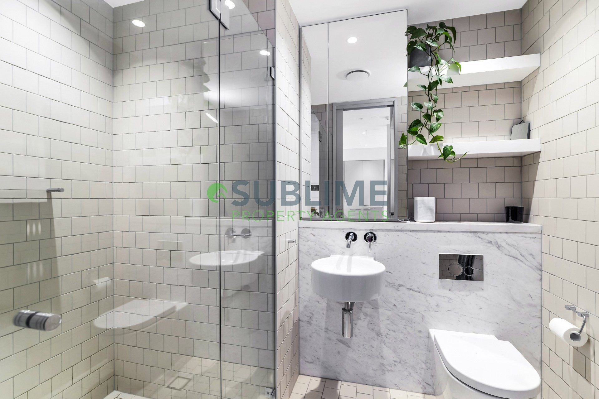 - Stunning bathroom complete with walk-in shower and floor-to-ceiling tiles.