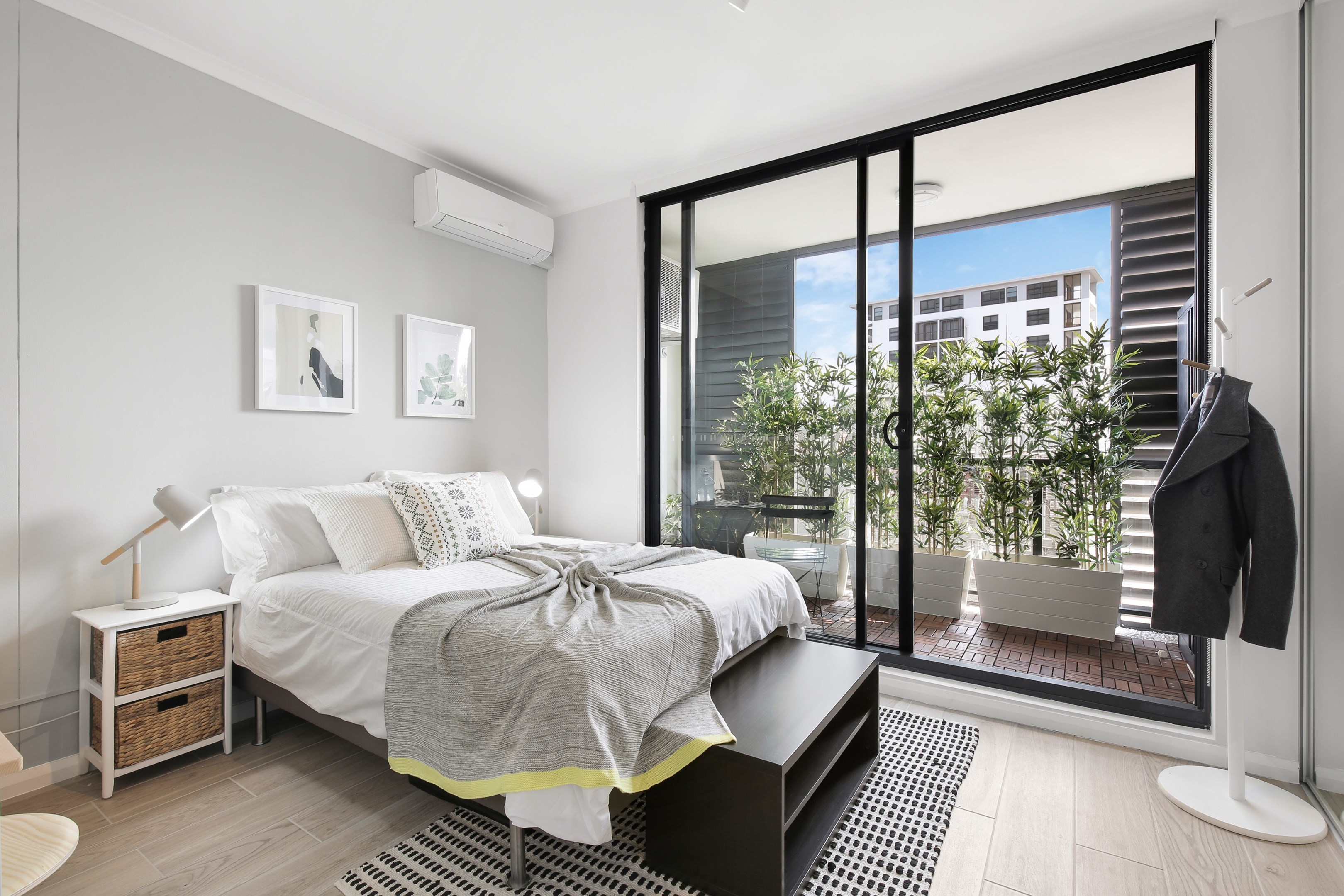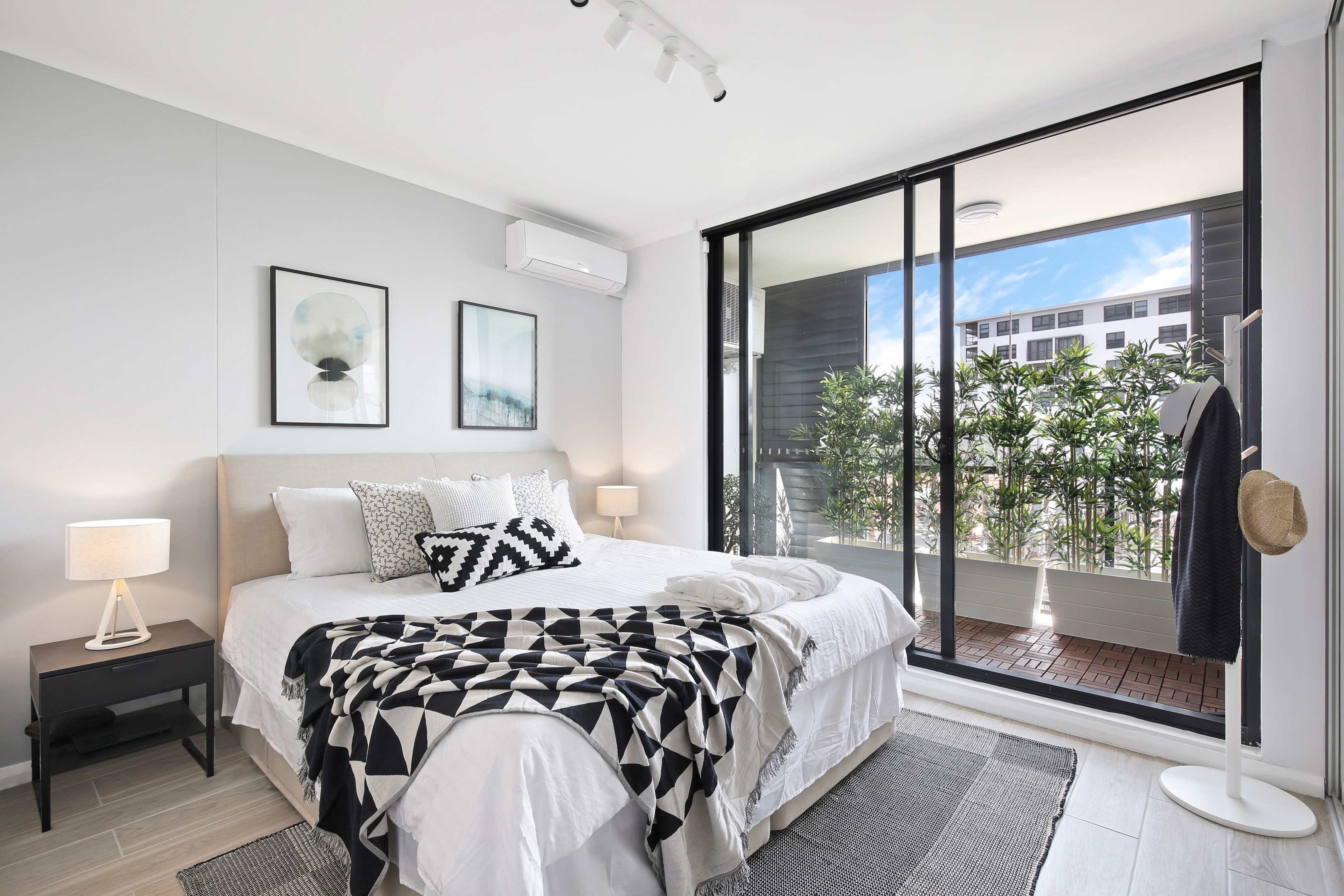 - Automatic blinds in all rooms, including blockout curtains in one bedroom.