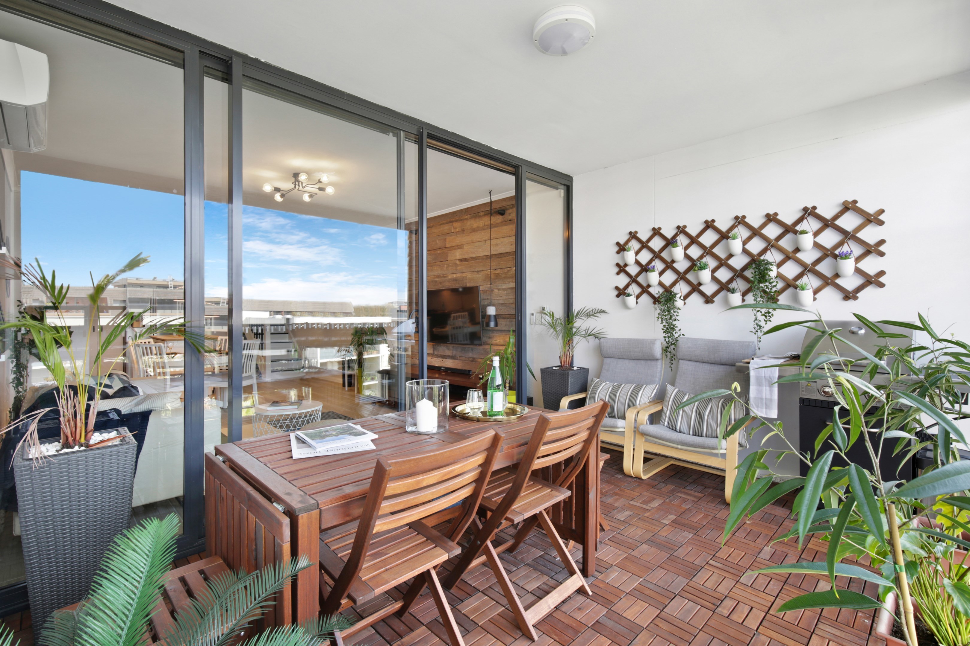 - East-facing enclosed terrace with louvers for all-weather entertaining.