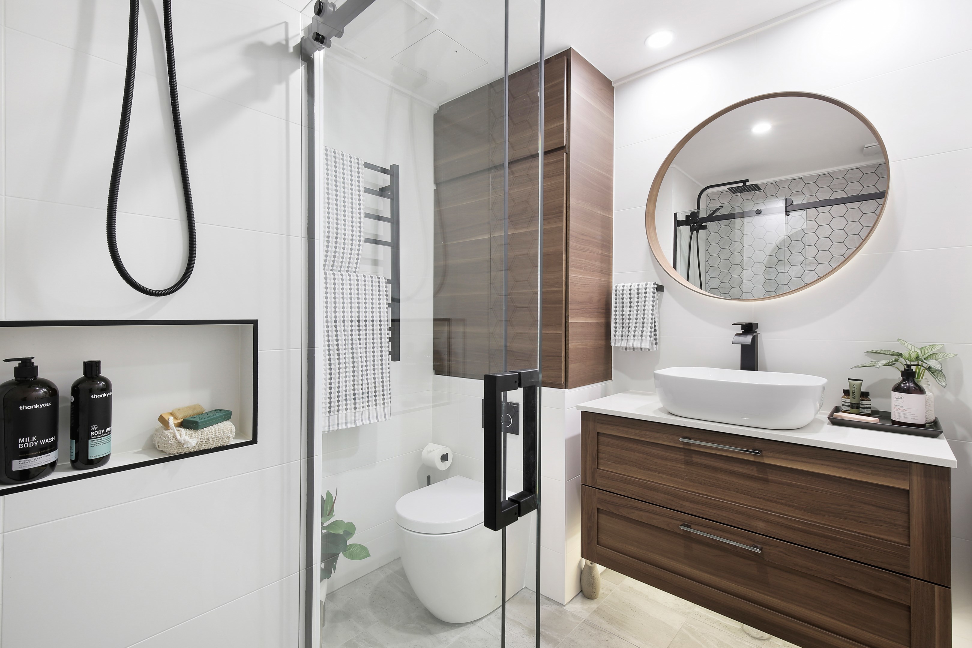 - Luxe oak-style tile floors on both levels, concealed laundry, linen cupboard.