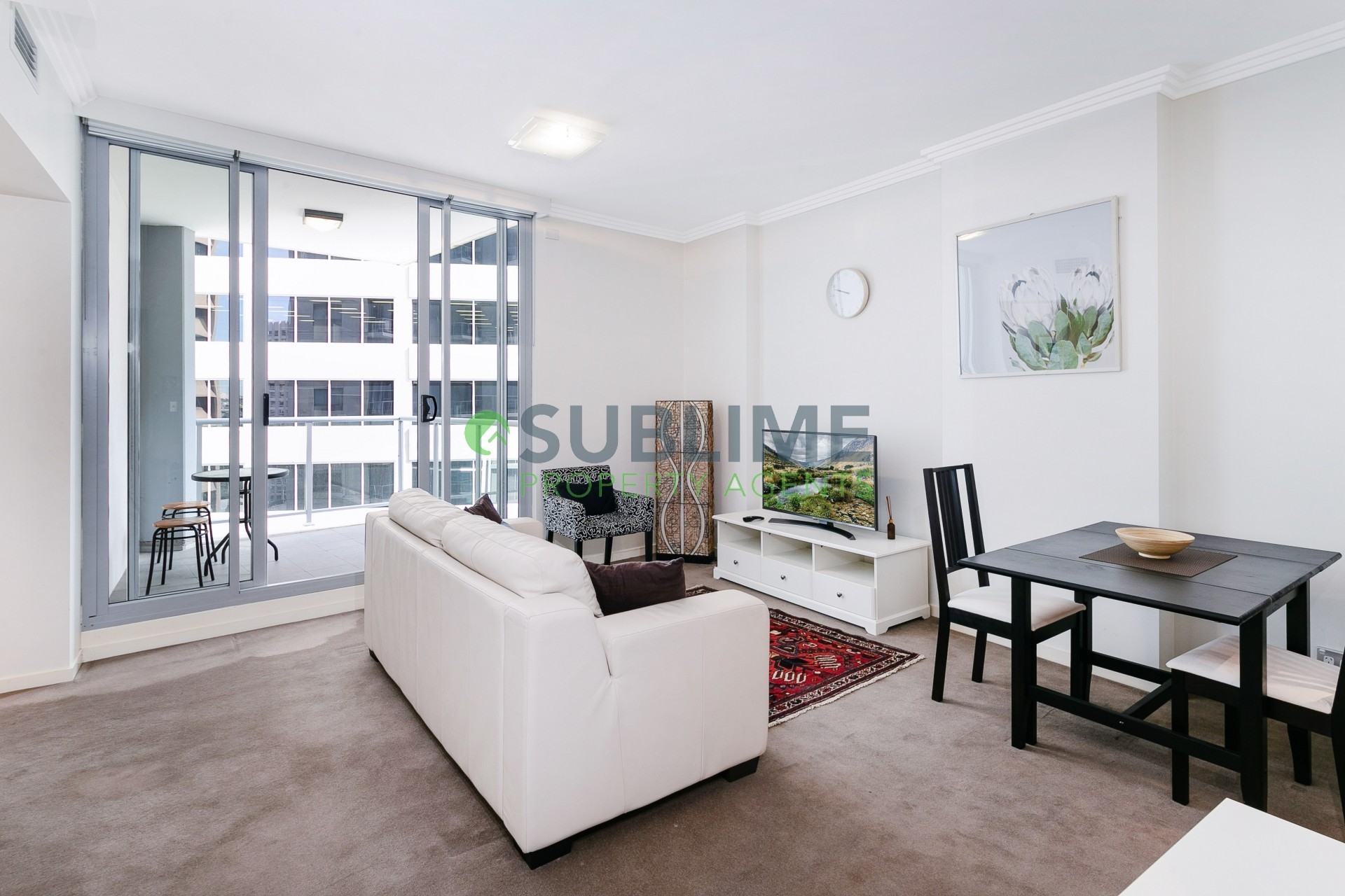- Light filled open plan living flowing to generous balcony.