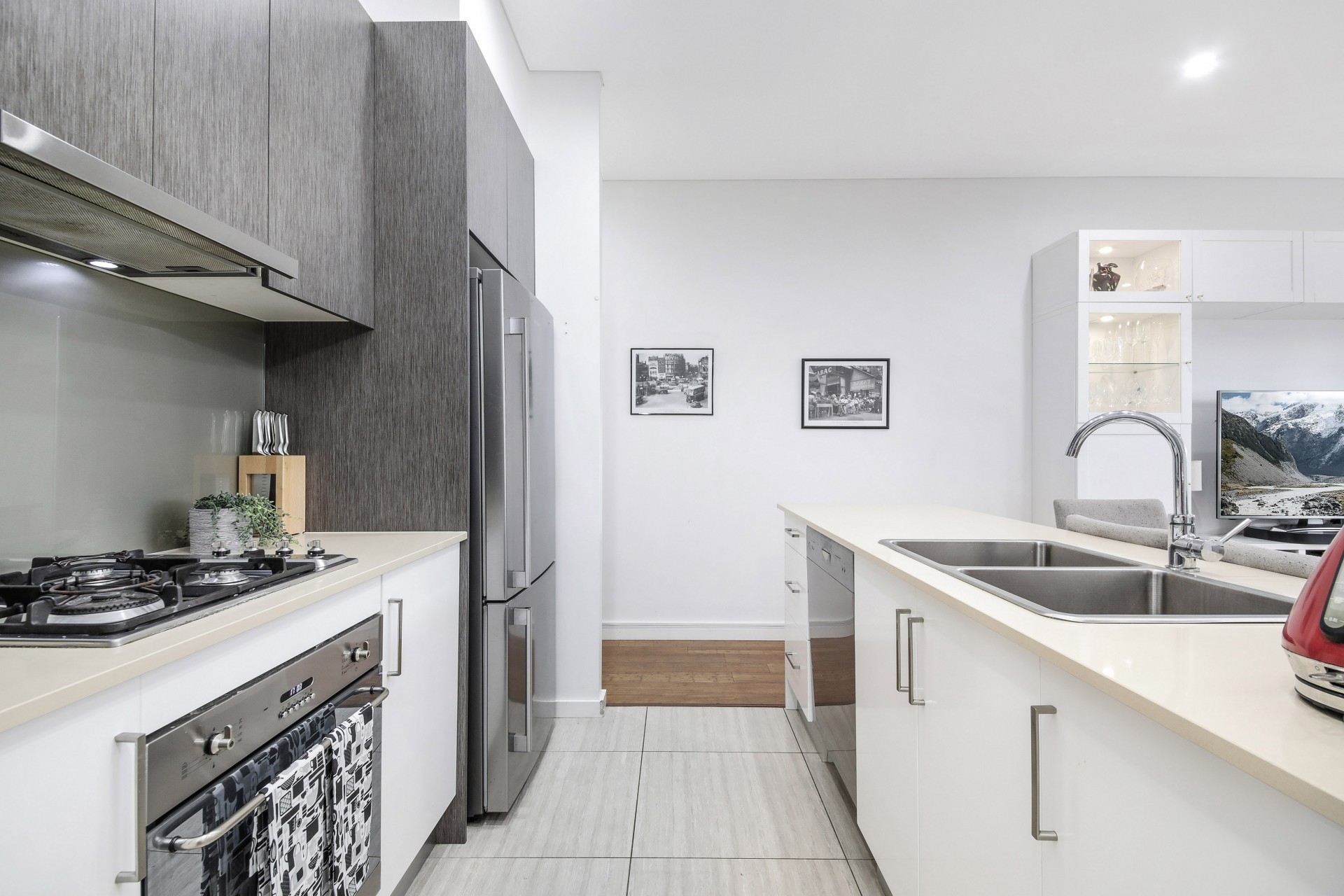 Open plan kitchen, light-filled living and dining leading to full width balcony