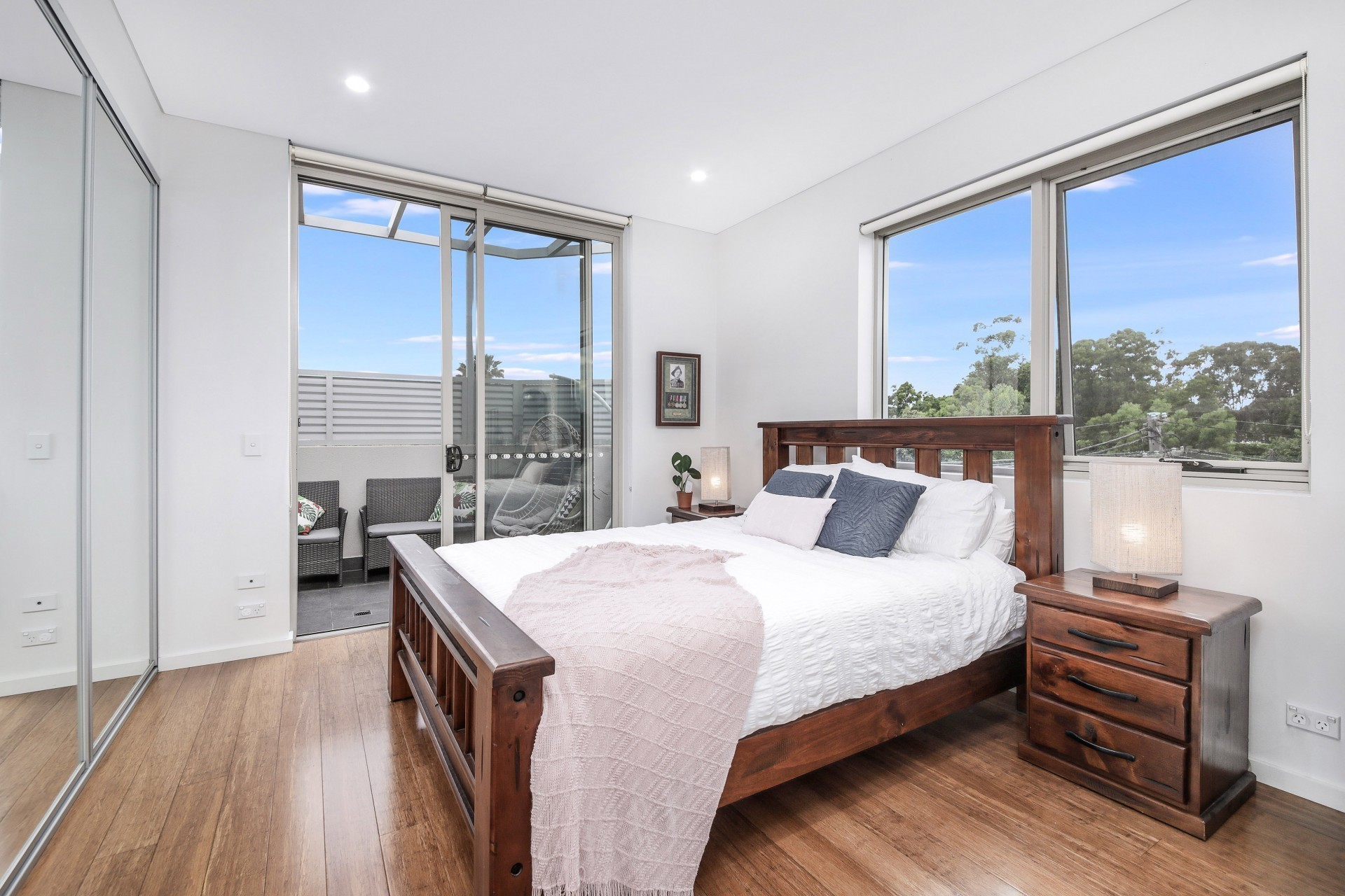 Premium easy care hardwood floors and electronic retractable balcony awning