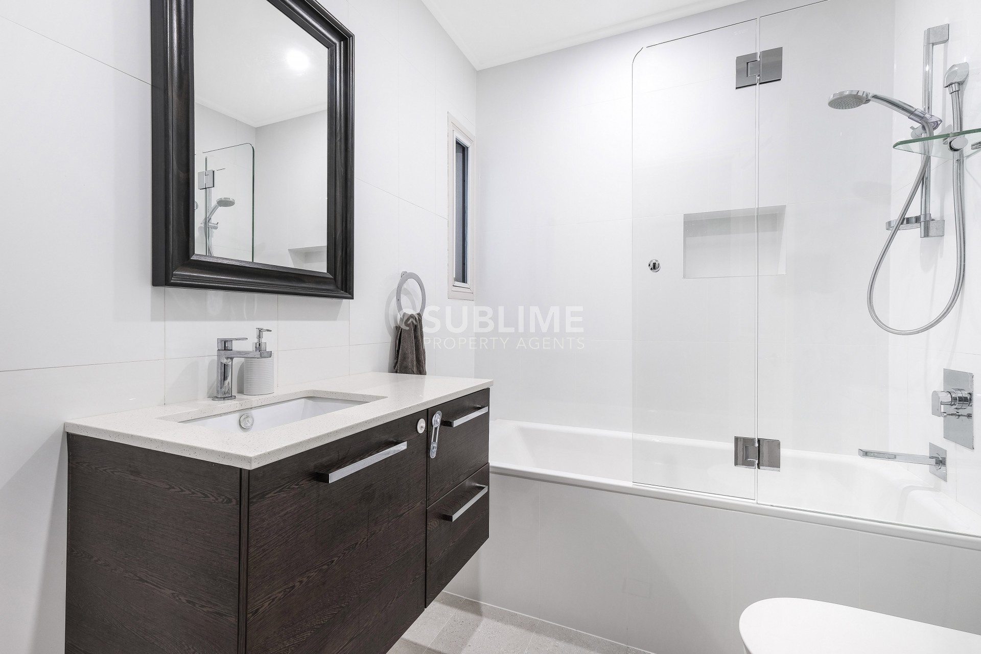 - Main bathroom complete with floor to ceiling tiles and bath tub.