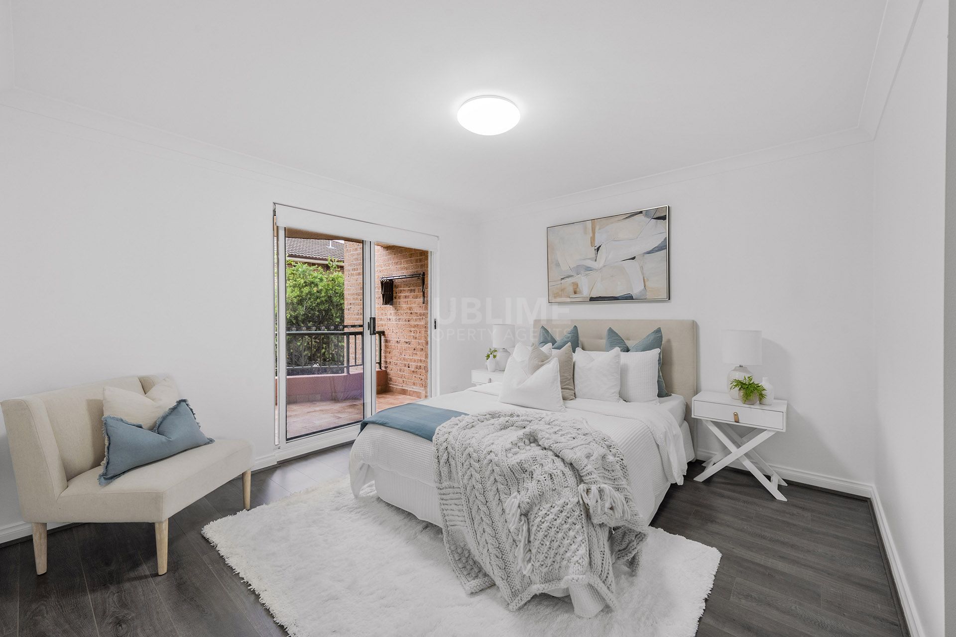 - Spacious bedrooms with ample storage, main with balcony access.
