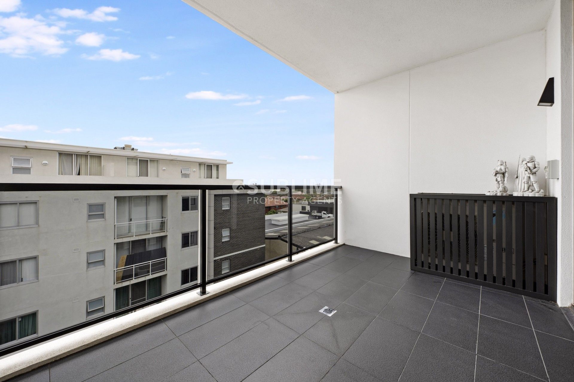 - Private balcony off the living and dining areas.