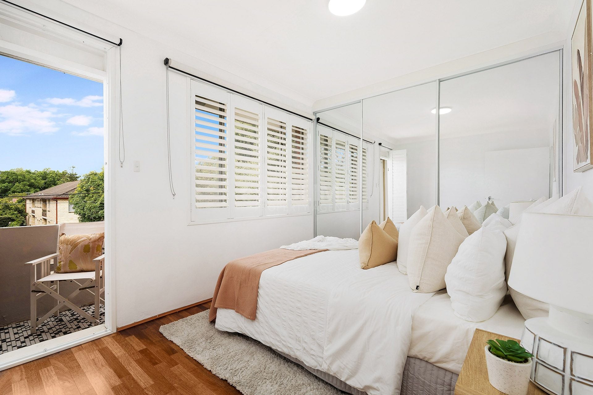 • master bedroom with balcony access and morning sun