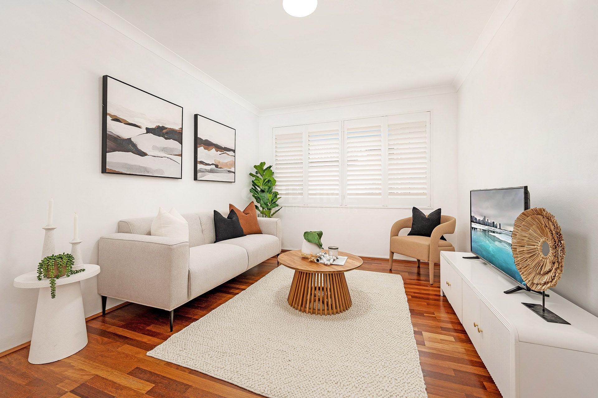 • solid timber floors and plantation shutters throughout.