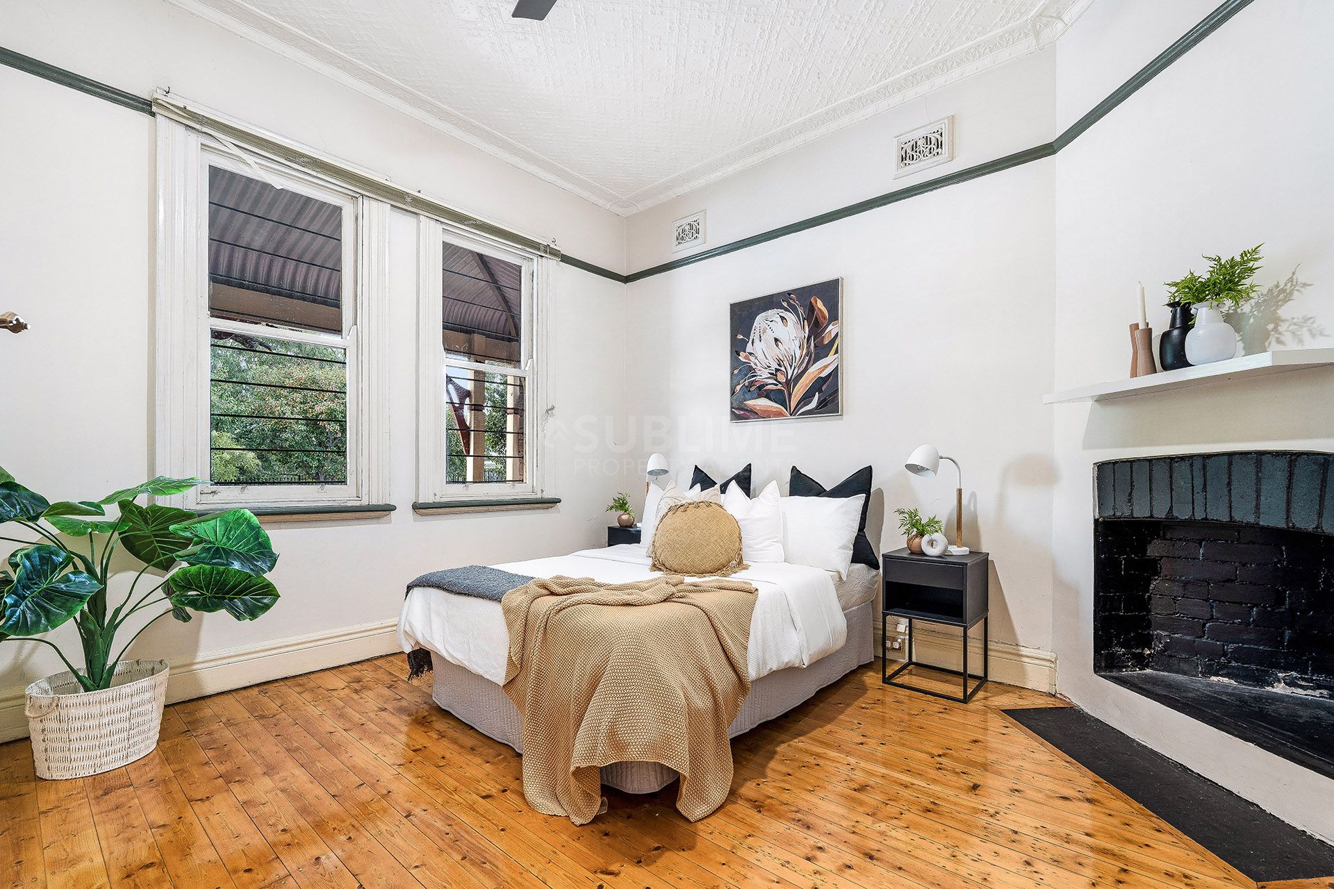 - Early 1900s Federation-style brick facade with original fireplaces, Kauri timber floors, and decorative high ceilings.